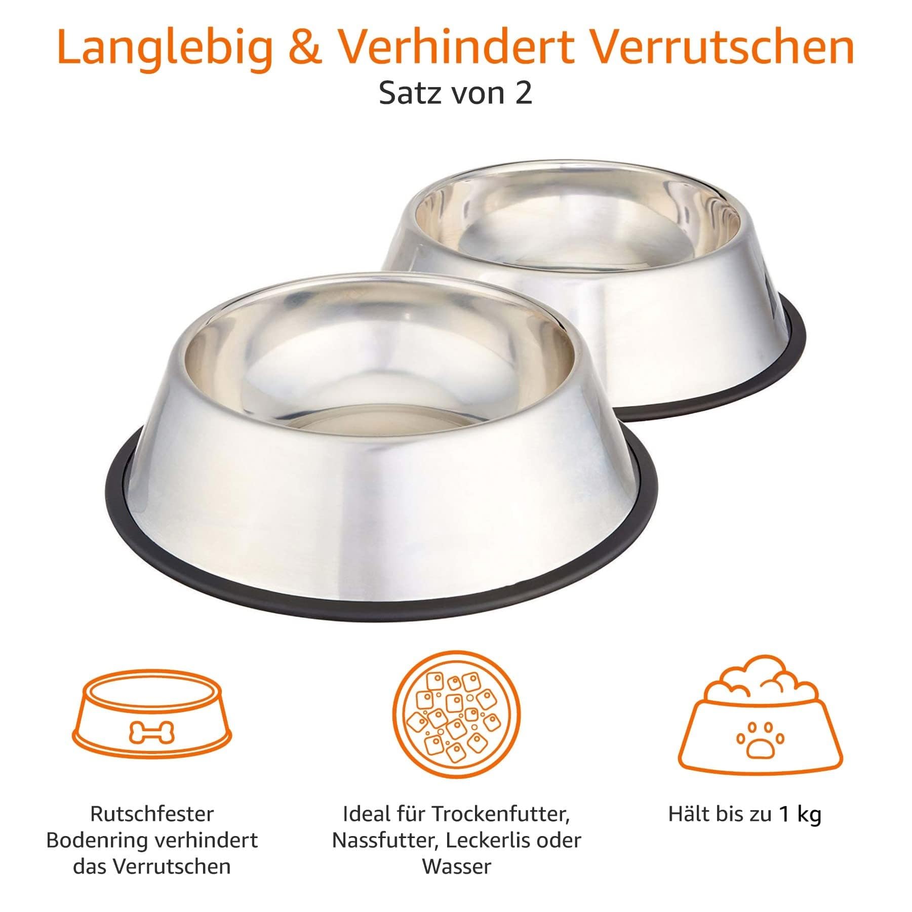 Amazon Basics Hundenapf, Edelstahl, 2 Stück, 946ml, Silberfarben